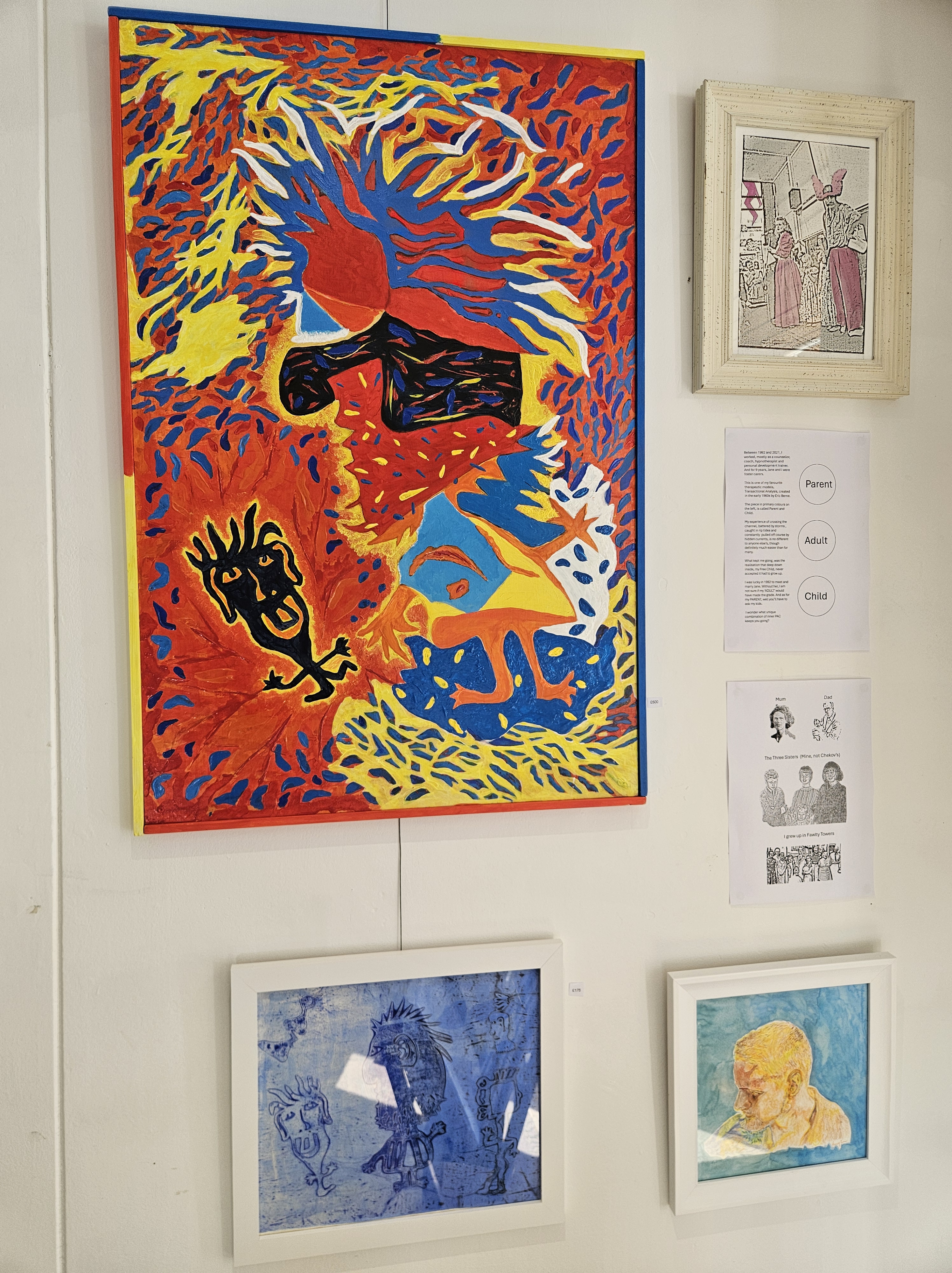 Like many, I sometimes struggle with the endless stream of thoughts and feelings triggered by these experiences, positive and negative. This exhibition was my attempt to create enough focus, for a short while, to bring some of this creative (and sometimes destructive) impetus into visible form so that I could share it